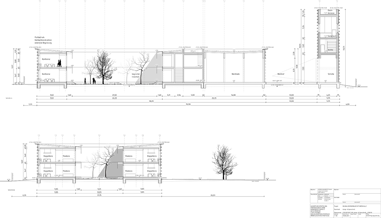 Gieseke Senden . Ein neuer Firmensitz für die Fa. Gieseke in Senden. Das Tiefbauunternehmen expandiert und hat uns beauftragt Ihren neuen Firmensitz in Senden zu planen. Der Standort, an der A43 gelegen, ermöglicht zum einen eine gute Sichtbarkeit des Unternehmens im öffentlichen Raum und verlangt gleichzeitig den besonderen Arbeitsschutz für die Beschäftigten. Die Antwort haben wir mit dem kontemplativen Innenhof für die Bürowelt gefunden und gleichzeitig mit dem Aufstocken des Schüttgutlagers zu einem turmartigen Gebäude die Sichtbarkeit zur A43 hergestellt.