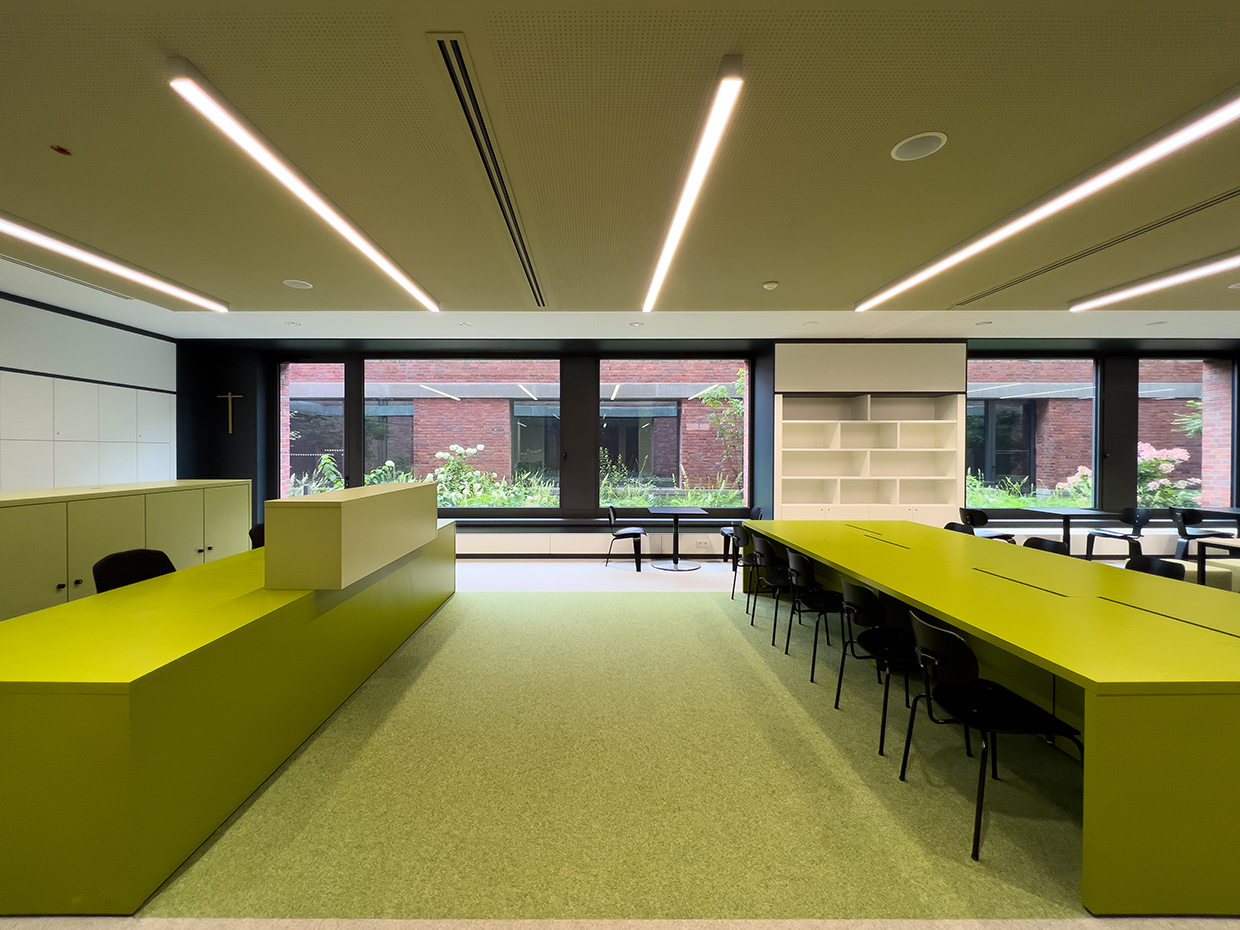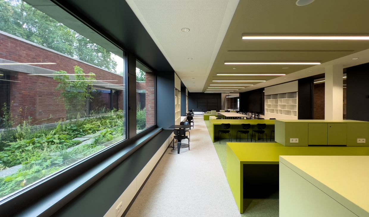 Neubau Campus KVG . Nach erfolgter Fertigstellung der Dreifachsporthalle am Campus des Kardinal von Galen Gymnasiums sind die Bauarbeiten zum neuen Hauptgebaeude termin- und kostengerecht zum Schulstart nach den Sommerferien 2023 abgeschlossen worden. Die neuen Klassen- und Differenzierungsraeume, Musik- und Kunsträumen sowie das neue Lernzentrum bilden einen weiteren Meilenstein der Gesamtmaßnahme. Nun werden die Aussenanlagen fortgeführt und wir werden den weiteren Bau des G9 Gebäudes bis Sommer des nächsten Jahres errichten. Im Anschluss werden wir die verbleibenden Bestandsgebäude sanieren und für die Zukunft rüsten. Geplante Fertigstellung der Gesamtmaßnahme ist zum Sommer 2026.