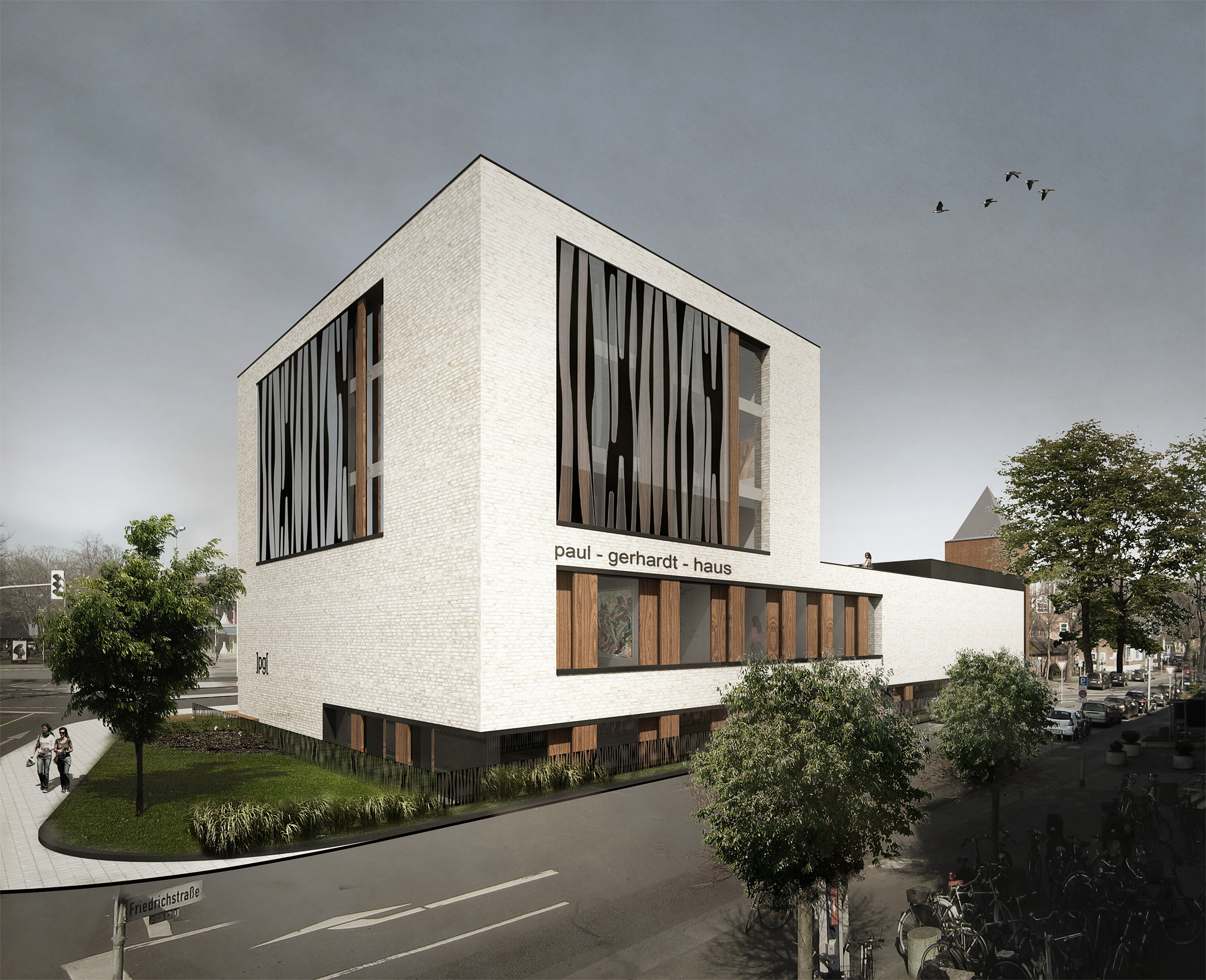 PGH Münster . Das neue Paul Gerhardt Haus im Herzen von Münster sollte die paritätischen Bereiche der evangelischen Erlösergemeinde, der Familienbildung und des Hot aufnehmen. Insgesamt sollte ein lebendiger Ort mit hohem sozialen Anspruch entstehen . Trotz des erfolgreich gestellten Städtebauförderantrags konnte das Projekt, aus wirtschaftlichen Zwängen heraus, von der Gemeinde nicht weiterverfolgt werden.