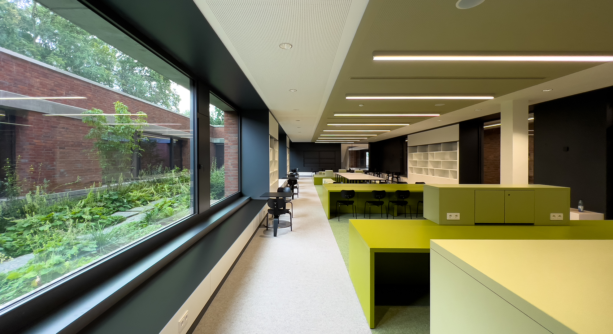 Neubau Campus KVG . Nach erfolgter Fertigstellung der Dreifachsporthalle am Campus des Kardinal von Galen Gymnasiums sind die Bauarbeiten zum neuen Hauptgebaeude termin- und kostengerecht zum Schulstart nach den Sommerferien 2023 abgeschlossen worden. Die neuen Klassen- und Differenzierungsraeume, Musik- und Kunsträumen sowie das neue Lernzentrum bilden einen weiteren Meilenstein der Gesamtmaßnahme. Nun werden die Aussenanlagen fortgeführt und wir werden den weiteren Bau des G9 Gebäudes bis Sommer des nächsten Jahres errichten. Im Anschluss werden wir die verbleibenden Bestandsgebäude sanieren und für die Zukunft rüsten. Geplante Fertigstellung der Gesamtmaßnahme ist zum Sommer 2026.